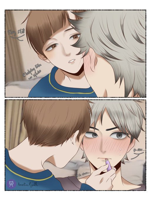 Shirabu help Eita using lipbalm cause his lips are dry😏