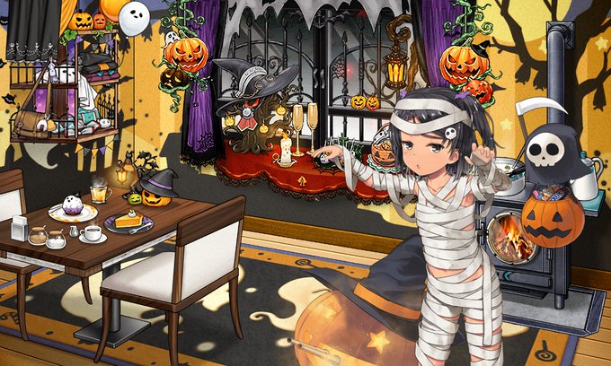 我がパラオ泊地にもハロウィンがやってきた!ヤァヤァヤァ!実は欲しい装飾に家具コインがあとちょっとだけ足らずウムムとなっておりましたが、先程防空演習から帰投した艦隊が家具コイン箱(小)を持ってきてくれたので、ハロウィンが終わる寸前で購入完了!