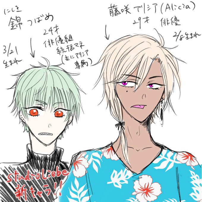 総勢64名でアイドル部門、俳優部門に分かれてます キャラ説明や会話文等はこちら(@StudioLiebe )(@studio_liebe )