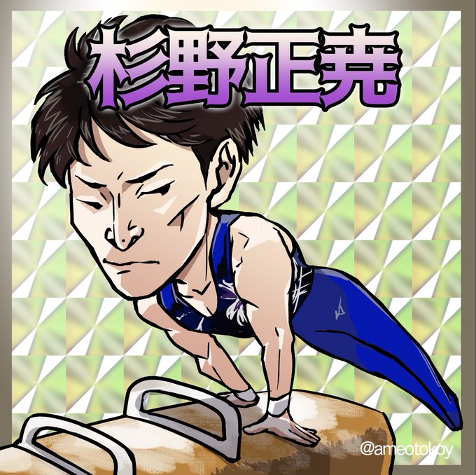深夜ですが…💦 NHK杯ガンバです!💪💪✨怪我なく楽しくベストを尽くせますように! #谷川航 #たのしい体操 #ビックリマンシール風