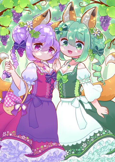 ぶどう畑のきつね姉妹🦊🍇