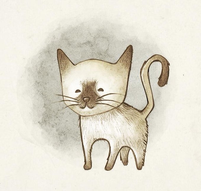 #Miau, Este #gatitosiamés os da las buenas noches. #ilustración #gatito