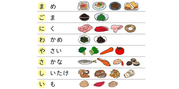 トップアスリートも実践 #教えて栄養 【何を食べるのがいいの❓】 キーワードは #まごにわやさしい ま➡️豆類 ご➡️ごま に➡️肉類(+卵) わ➡️海藻類 や➡️野菜 さ➡️魚介類 し➡️きのこ類 い➡️いも類 「まごにわやさしい をそろえられるように食材を選びましょう」 #アミノバイタル #勝ち飯