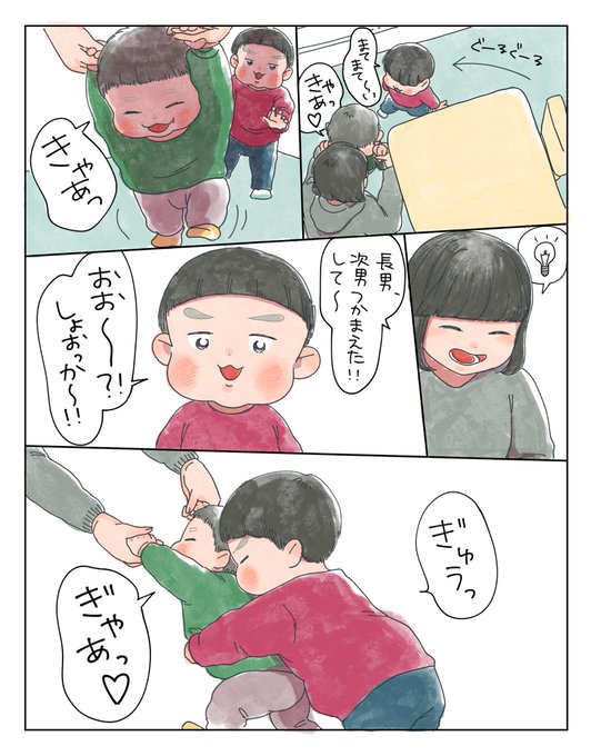 次男がつかまり歩きをしていた頃の話です☺️ タイミング的にも写真には残せなかったけど、ずっと覚えていきたいなという瞬間があるたびにペンを取りたくなります。 (長男2歳5ヶ月、次男11ヶ月)