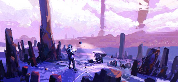 Just arrived home from an amazing trip, so many good things! had to do something after a while so did this speed painting "New Moon" 2017 check https://t.co/h5q20m2HK6 for posterize version! #scifiart #explorer #illustration #speedpainting