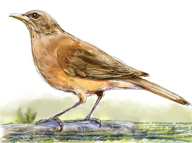 Clay-colored thrush. View more on https://t.co/QyNdOY8Rs2 #birding #birds #drawing #sketch #painting