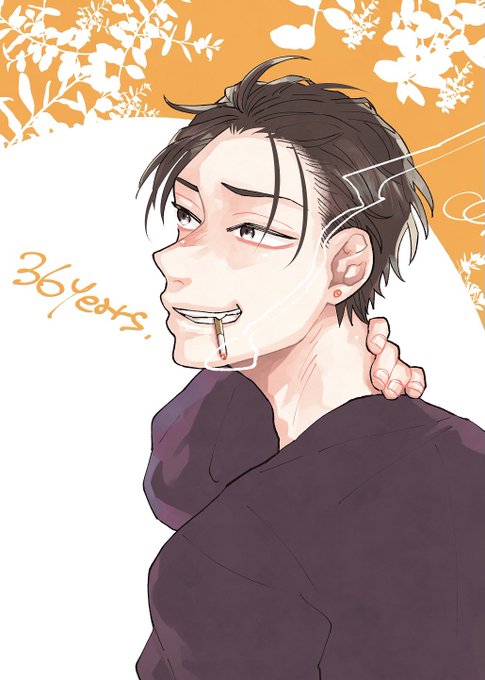 ぷーしゃ(@puyn888 )に宮地裕也(37)を描いて貰いたいがために描いた高尾和成(36)喫煙希望…オールバックに夢をみたけど高尾和成から触角取るのはダメだよな????と思って触角描き足した🥺