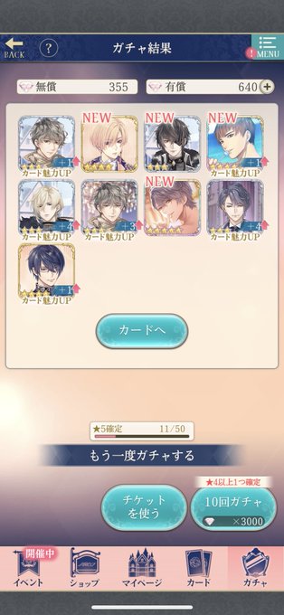 無事に推しが来てくれてハッピー😂 ジンさんは2枚もきたわ笑 クラヴィス様嬉しい💕💕のじけんボイスありがたや🙏