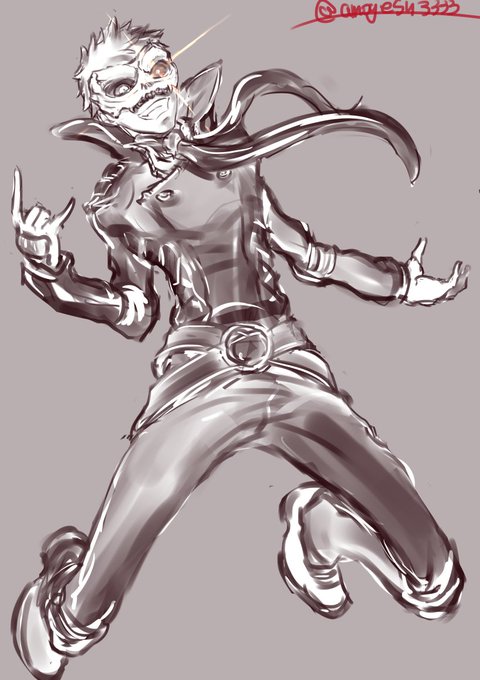 OPのガードレール的なとこ滑ってるポーズをイメージしたけど、あんな捻った感じにならなかった。あと仮面が鬼門でした。