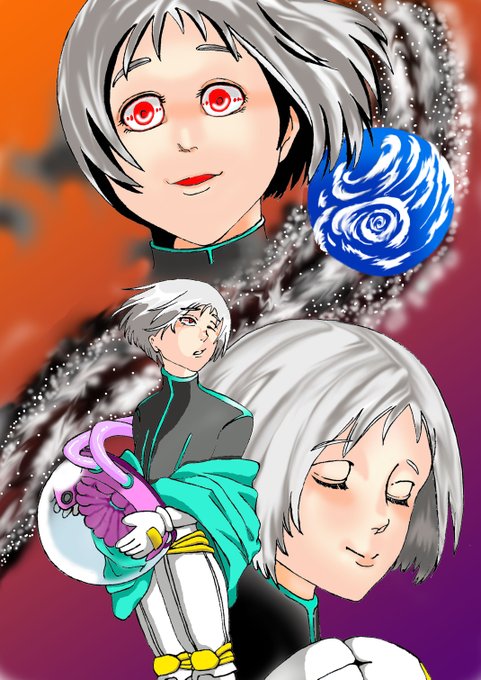 お友達のセンさん@lSampA6mlWoAdn7 のオリジナル主人公SENくんを描かせて頂きました。通常時の博愛に満ちた彼と豹変顔の彼のギャップがお気に入りです。星を探す仕草が描けて幸せでした!有難うございました。