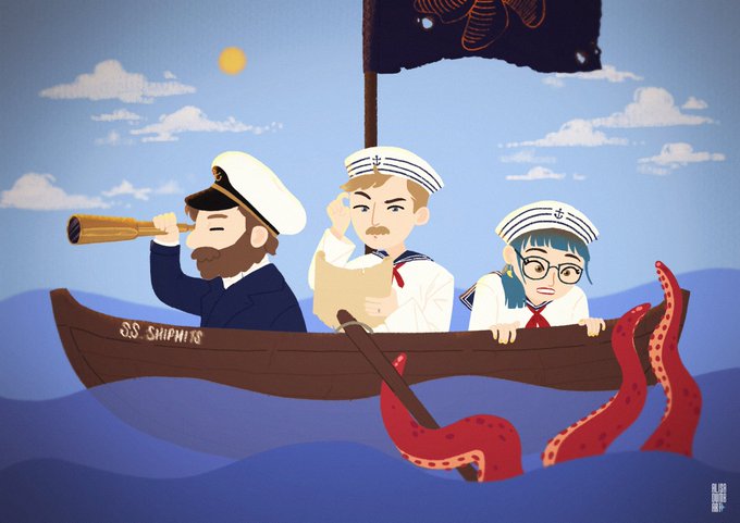 my rendition of the @shiphitspod crew sailing the high seas. so funny & really highlights the uh-ohs and whoopsieness of seafaring 🤌🏻🌊🛳