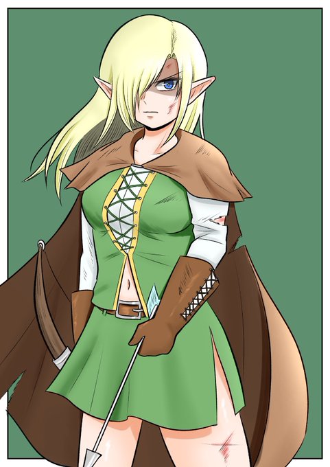【2枚イラスト】「エルフって数百年から数千年生きるんですよ。そりゃ、その写真みたいな戦士をやってた時代もあれば、今みたいにダラダラ生きる時代もありますよ〜。私は美味しいものがたくさん食べれる今の時代が好きだなぁ」 #ぽっちゃり