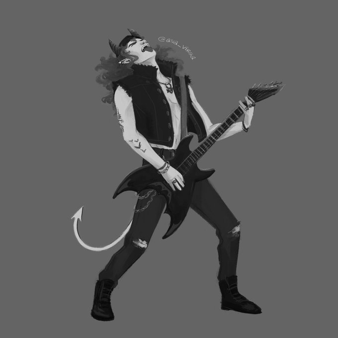 [wip] Eddie Munson from stranger things as a dnd tiefling bard. After a looong rest without doing fanart... I'm back 🙃