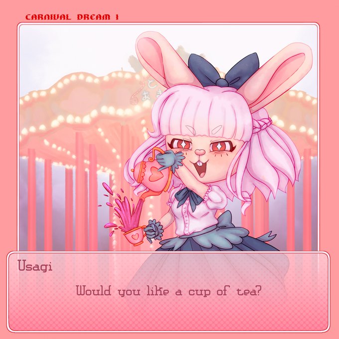 The first idea I had for this looked more like those "desktop" images, but then I spent a day watching gameplays and this happened. This one is for @Lizally09 <3 usagi is my fursona (oc?) and stormy is her oc. Now I want to make a game lol. 💜🐰🐰⭐️🦄