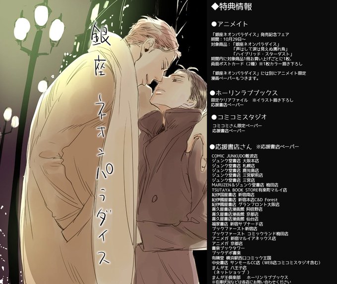 【新刊特典情報】10/29発売の「銀座ネオンパラダイス」の特典詳細をまとめてみました。ぜひご都合のよい書店さんでお手に取ってもらえたら嬉しいです!