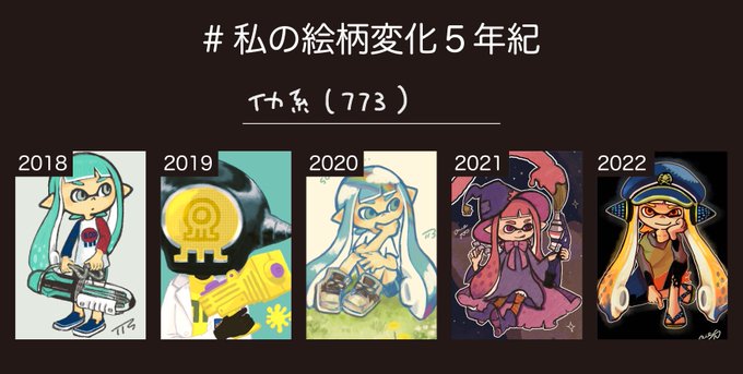 #私の絵柄変化5年紀 創作と🦑2つ作ってみました… 今も迷走してる