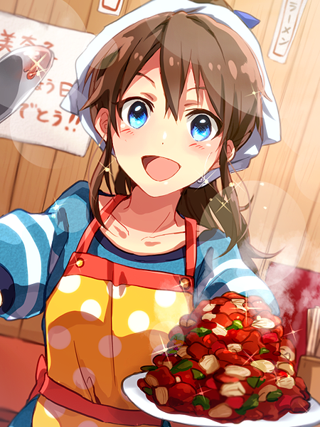 美奈子に誕生日祝いにエプロンをあげたら、これを着て料理を作りたいからと佐竹飯店に連れて行かれました。そして『ひなたちゃんにお野菜いーっぱいもらったので、ぜーんぶ食べて下さいね♪』と言われました。こわい。美奈子誕生日おめでとう!