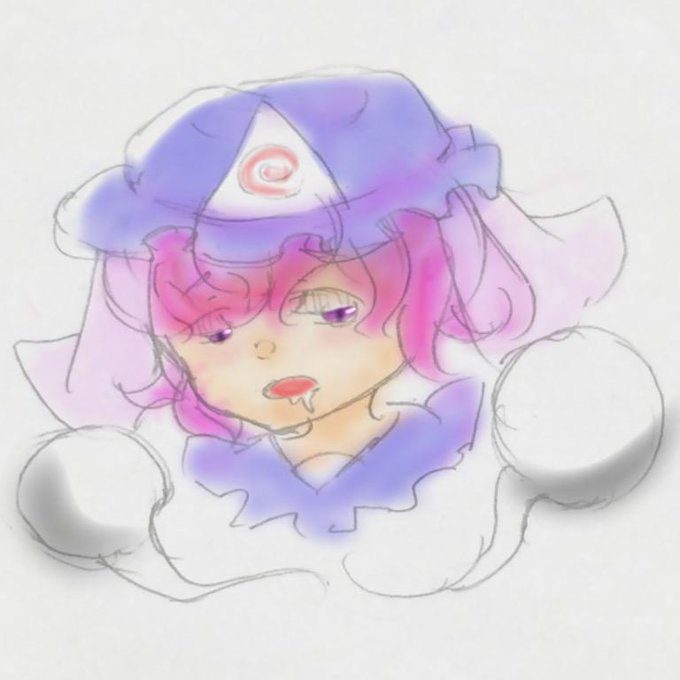 #深夜の真剣お絵描き60分一本勝負 ほんわか、眠そうな幽々子様