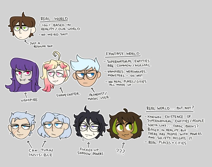 just a little doodle for explaining my like...mental...categorization system for my OCs???