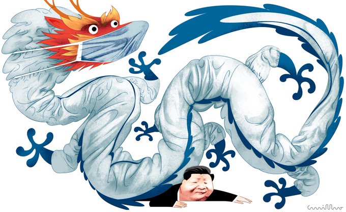 Quarantine - #editorial #cartoon for @dntwit . The overarching restrictions and quarantine measures implemented in China to fight the #coronavirus health crisis threaten its economy and Xi Jinping’s tight grip on the country. #china l #dragon #quarantine #health #lockdown