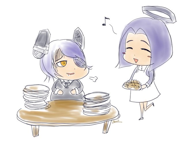なんかこんな絵面浮かんだ。どんどん竜田揚げを持ってくる龍田ちゃん #艦これ版深夜の真剣お絵描き60分一本勝負 #艦これ版