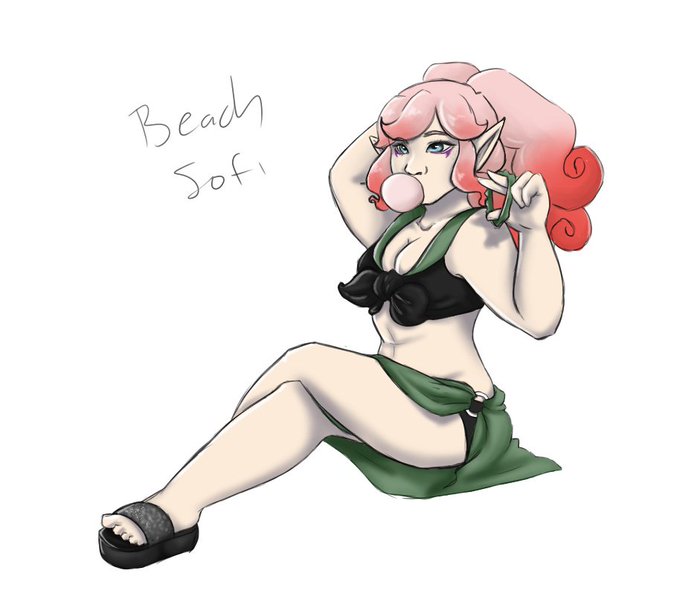 i really like how this came out, Sofi in her swimsuit she made to match Squees colours