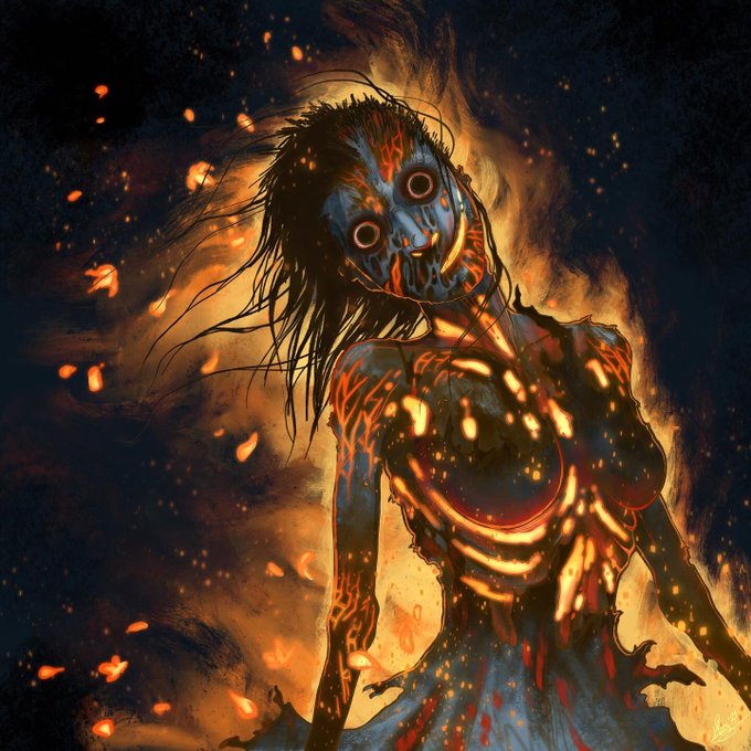 This 🔥 girl 🔥 is on 🔥🔥🔥 My finished ‘Burning Maid of Kindling Lane’ for @manoghosts’ amazing AR horror card game ‘Photoghasts’ 🎃💕 Get a print of this, along with a bunch of other awesome spooky rewards, when you back the Kickstarter over here: https://t.co/UAPITXg4KQ