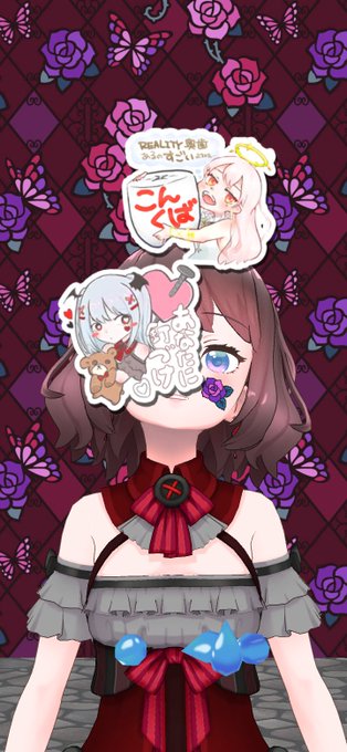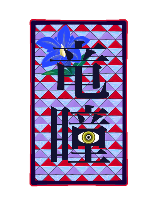 @RindouEnisi こだわり ・和風 ・代理キャラの紫と赤 ・鱗模様と流水模様で龍をイメージした柄