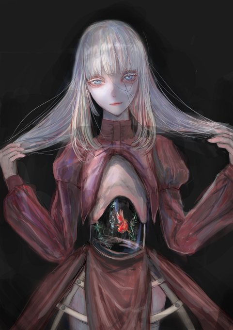 お腹で金魚飼ってる人描きました #イラスト #drawing