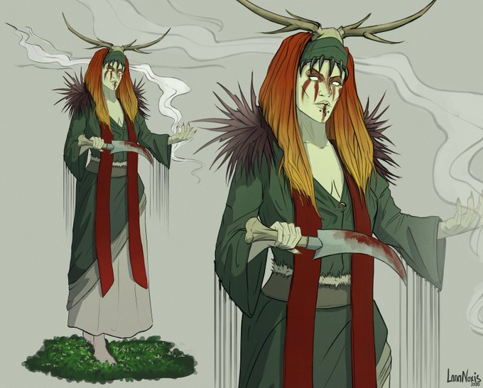 Lis also knows how to play flute, that she does quite often still to rest and think. And she loves wood- bonecarving. Often she carves runes, but sometimes-small trinkets and figurines of different kind.