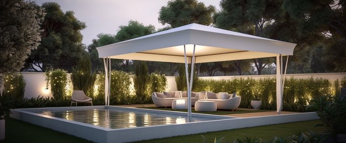 Ideas for a small 4x3m above ground pool with a gazebo on a 50m² terrace.