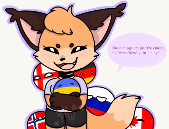 Drew my fursona with a bunch of Countryballs because why not? Very friendly clay.