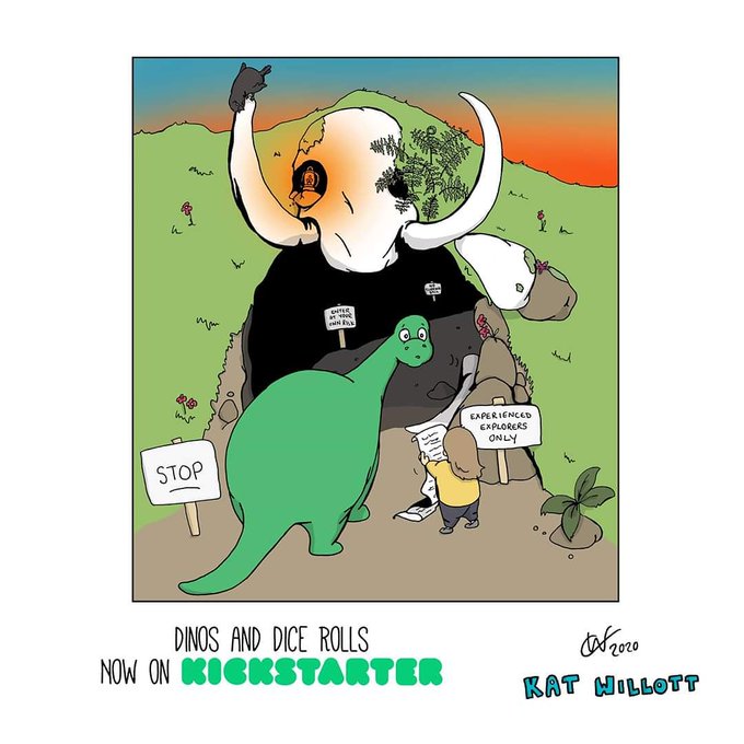 If you've been enjoying following Emily and Ernie in my Tuesday drawings then check out my Kickstarter comic Dinos and Dice Rolls, where you can help them on an adventure through a network of caves. Just 42 hours to go! https://t.co/7tbFREIlNr