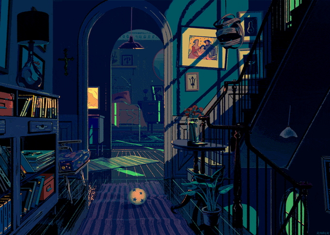 움직이는 일러스트. 계속 바라보게 돼.
