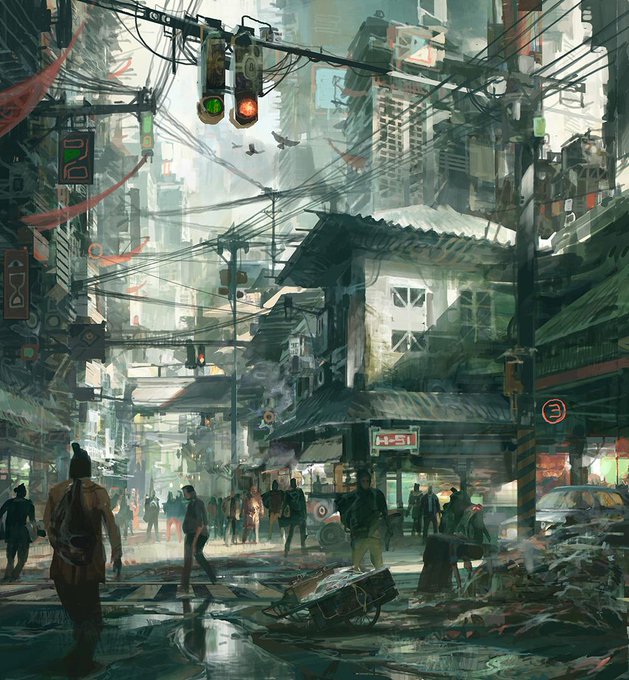 애니메이션의 한장면 같은 일러스트들. 배경이 멋지구냥.