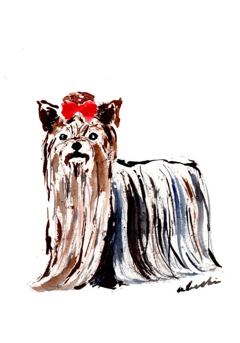 ヨークシャーテリア描きました。クラシックなリボンスタイルが好きです。