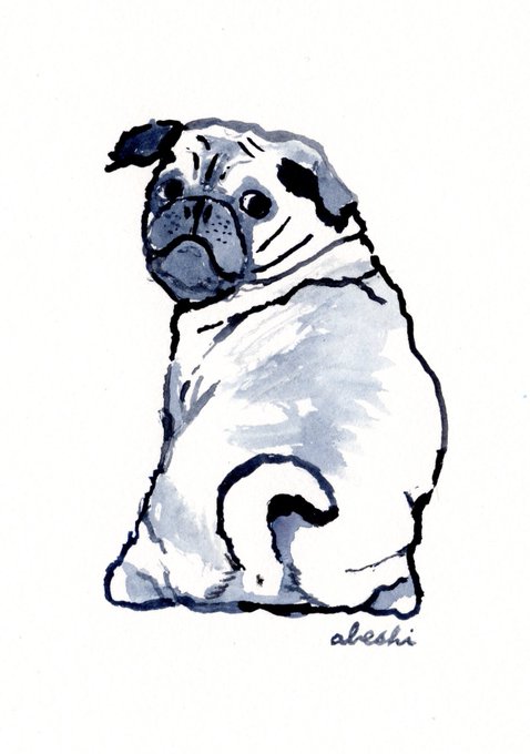黒パグを描きました。首をかしげるワンちゃんたちは可愛らしいです。