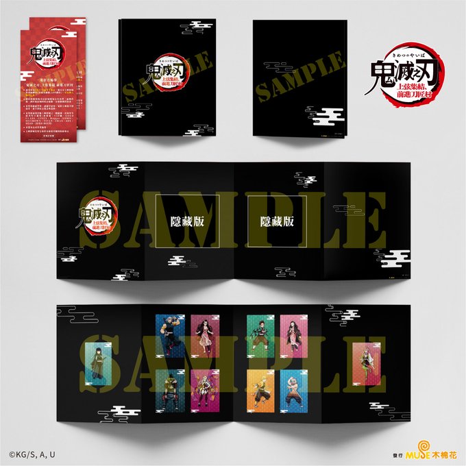《鬼滅之刃 上弦集結,前進刀匠村》典藏套組:內含2D電影首輪交換券2張、全套角色卡1套(10張)、隱藏版場景圖卡2張、收藏套乙個