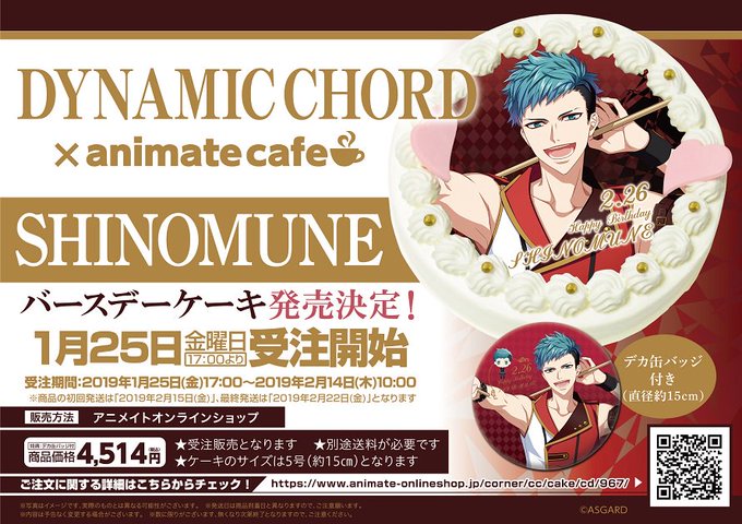 『DYNAMIC CHORD』のSHINOMUNEバースデーケーキは本日1/25(金)17時より受注開始♪受注締切は2/14午前10時まで!詳細は画像をご確認ください。