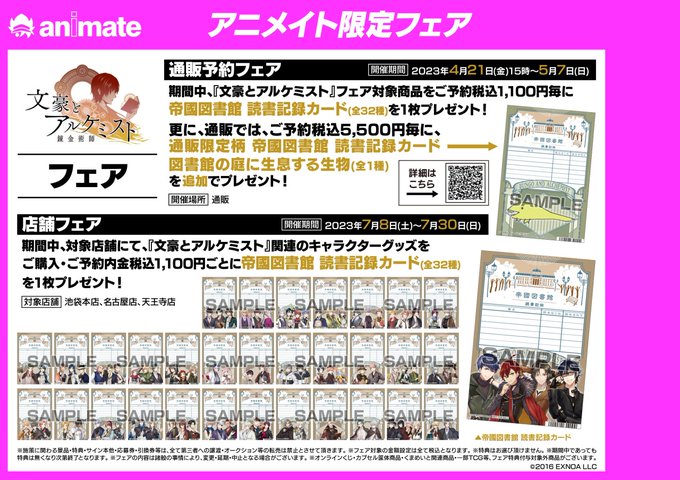 対象商品をご購入・ご予約で特典「帝國図書館 読書記録カード(全32種)」をプレゼント!