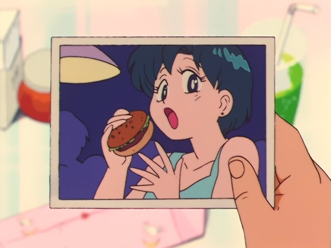 RcDonald's (ラクダナルド rakudanarudo) in Sailor Moon R (1993) Rakuda is Japanese for Camel, hence the logo! Maybe that's where this photo of Ami was taken? #SailorMoon
