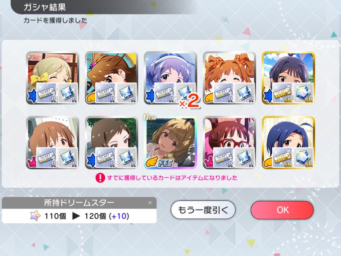 しかしここまでで、初入手SSRがまだ2枚だけという恐ろしい事実…まだ全然持ってない子のSSRとかあるのになあ…!!