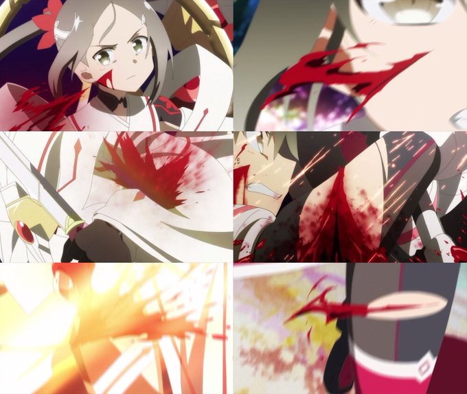 銀とにぼっしーの被る演出やっぱ良いよなぁ…!( ˇωˇ ) 銀は背後からの攻撃で致命傷負っちゃったけど、今度はそのっちが守ってくれたのがもうね…(語彙力皆無) #yuyuyu #ゆゆゆ