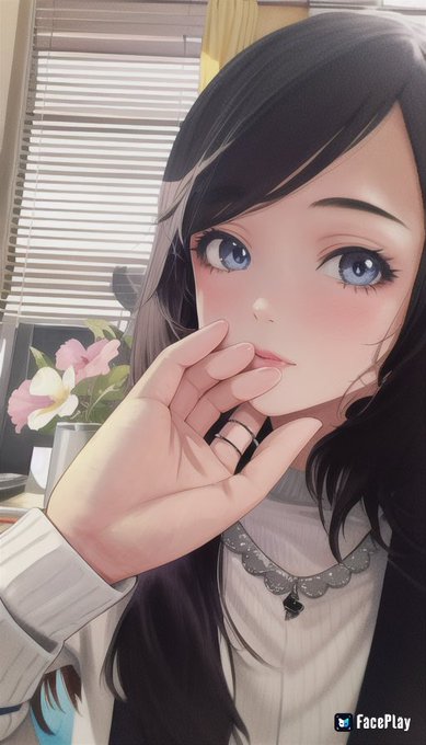 アプリでイラスト化されたあんこ 2枚目3枚目は自分の手が男の手に変換されとりますΣ( ˙꒳˙ ;) このアプリすごいっす!!!