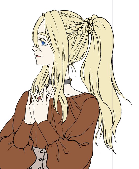 一枚目がエスさんから頂いたラフで、二枚目が私が描きあげた絵。自分では絶対思いつけないお洋服で楽しかったです🥰🥰🥰 こんなにフリル描いたのはじめて……