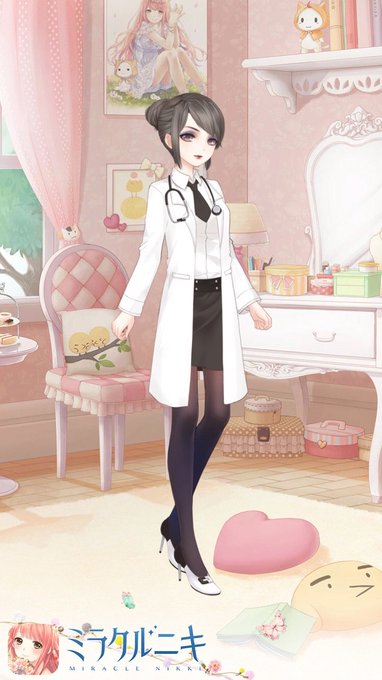 お題「聴診器」 あまり優しくなさそうな女医さんコーデ (スクショの方に眼鏡付けるの忘れました…) #ミラクルニキ版深夜の真剣お絵描き60分一本勝負