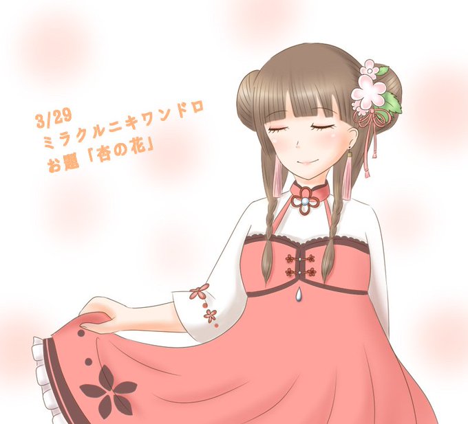 お題「杏の花」 せっかく可愛いんだからもっと裾を見せればよかったですね… #ミラクルニキ版深夜の真剣お絵描き60分一本勝負