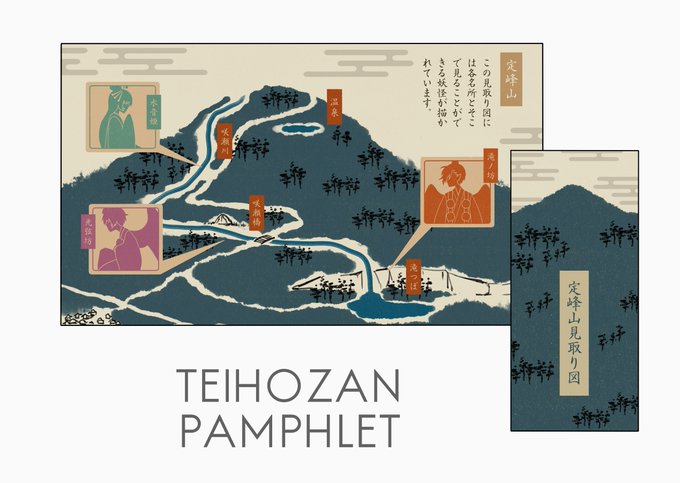 みました~!桜夜ちゃんと光弦坊様のやり取りがとってもかわいくてですね…!お似合いだ…ありがとうございますありがとうございます…あまりに楽しくてパンフを作って観光に行けるようにしてみたけど地形は半分以上妄想だよ #奇奇怪怪コイ絵巻