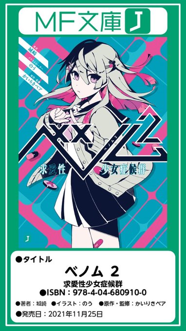 本日「ベノム2 求愛性少女症候群」発売日です。MF文庫Jというレーベルから出ており、定価は682円です。見つからない場合、どこにあるか分からない場合はこちらの画像を店員さんにお見せしていただければと思います。何卒よろしくお願いします。
