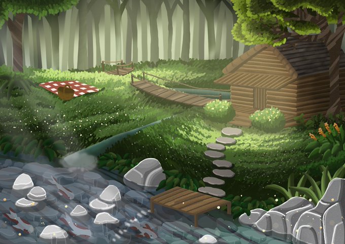 My latest background art.💗 Well, i dont know what is missing but i think it’s still not good enough🤔 is it about light/shadow, or the color, the shape, perspective? Ouchie This is hard! #landscapeart #digitalart #ArtistOnTwitter #digitalart #drawingoftheday #environmentart